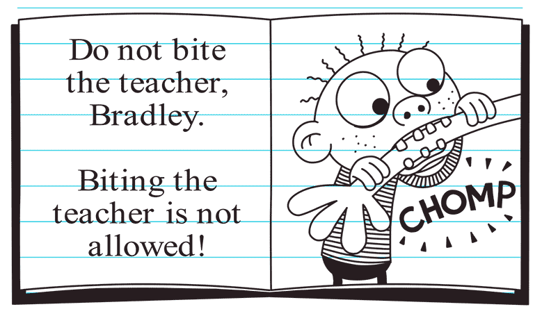Greg admits that while Bradley may have been a bad kid in real life, his mom's book portrays him as being much worse than he actually is (describing Bradley as "pretty much the Devil"). Bad Bradley is always doing evil things like biting teachers and poking his fingers into other kids' eyes. Just as Susan was thinking about publishing, Bradley and his parents ended up moving back to Greg's town, which made Susan put a stop to any plans she had of getting her book published.