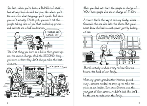 Greg contemplates disclosing to the rest that Gramma's meatballs are store-brought and they can have them whenever they want, but he visualises a reality in which he retains Gramma's secret to himself and becomes the new head of the Heffley family. Greg decides to promise Gramma that he will retain her secret to himself and even though he feels pity for cutting in line, he reflects that sometimes things can get a little messy.