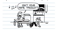 At the roller rink during couples' skate, Greg tries to ask Holly to skate with him but she mistakes him for Fregley, causing him to lose interest in her. She writes in his yearbook that he seems okay, so Greg might get some interest back, but that is spoiled when she writes a message in Rowley’s yearbook.