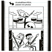 In the most significant role the band has had in the entire series, Greg discusses how Rodrick is convinced that his band will eventually make it big. Greg doesn't seem too sure about this -- aside from the band's name, Greg notes that there are many obstacles in the way of Löded Diper's to "make it big." To name at least three: