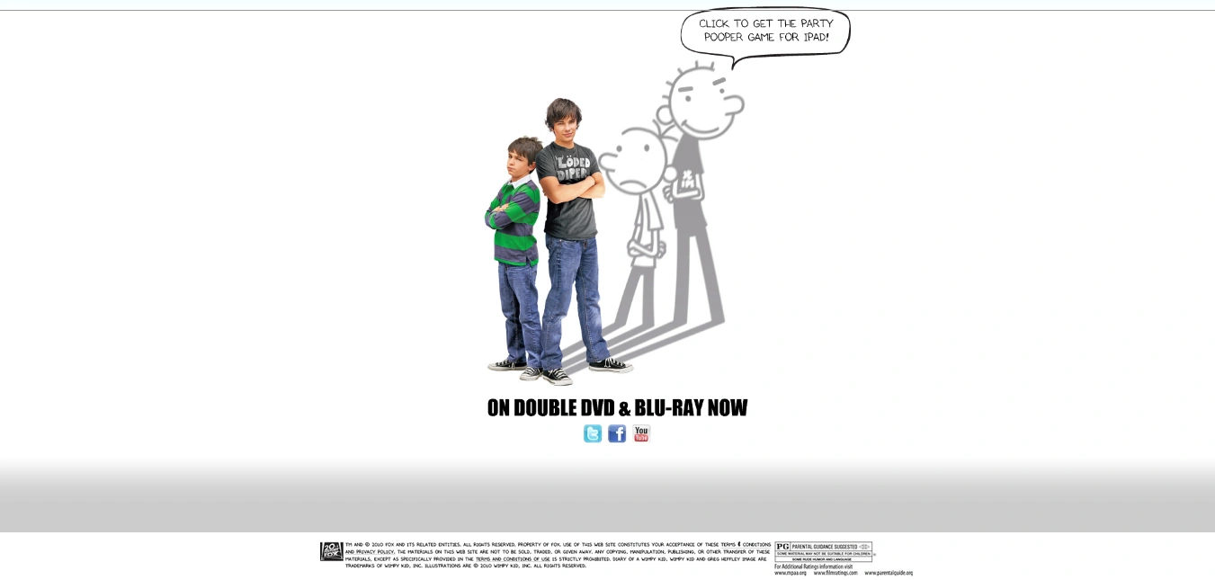 A link to the Party Pooper game for iPad. Also a link to the Twitter, Facebook and YouTube. The page only promoted the DVD and Blu-Ray.