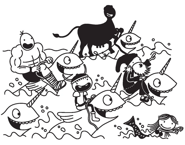 Greg suggests that Rowley could put some monsters in the story, but Rowley prefers unicorns, pixies or tree elves. Greg tells Rowley that if pixies were going to be in the story, Rowley was obligated to put trolls in the story as well, as trolls ate pixies.